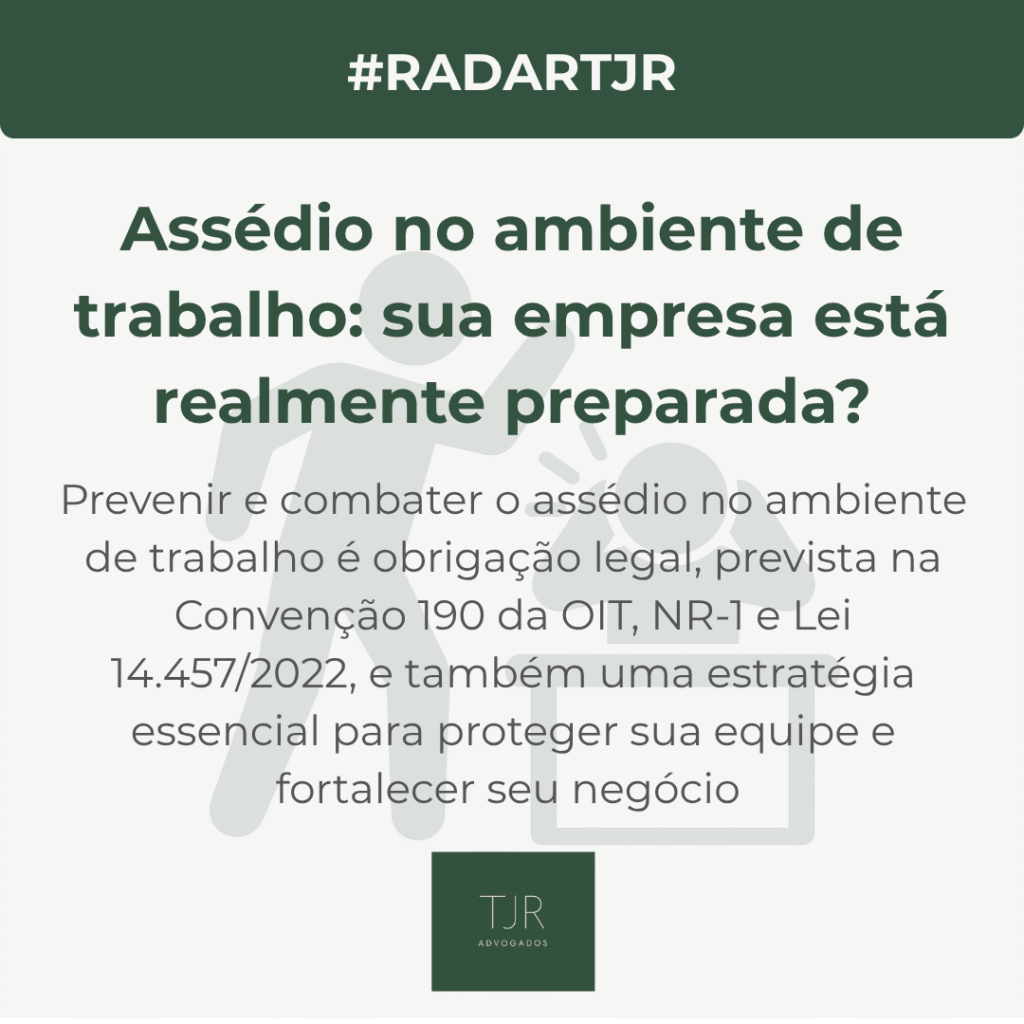 A proteção contra o assédio no trabalho é uma obrigação legal consolidada e atualizada por normas internacionais e nacionais, como a Convenção 190 da OIT, as Normas Regulamentadoras NR-1 e NR-5, e a Lei 14.457/2022. A não observância dessas normas representa riscos jurídicos, financeiros e reputacionais sérios. 🔔 A partir de maio/2026, a fiscalização será […]