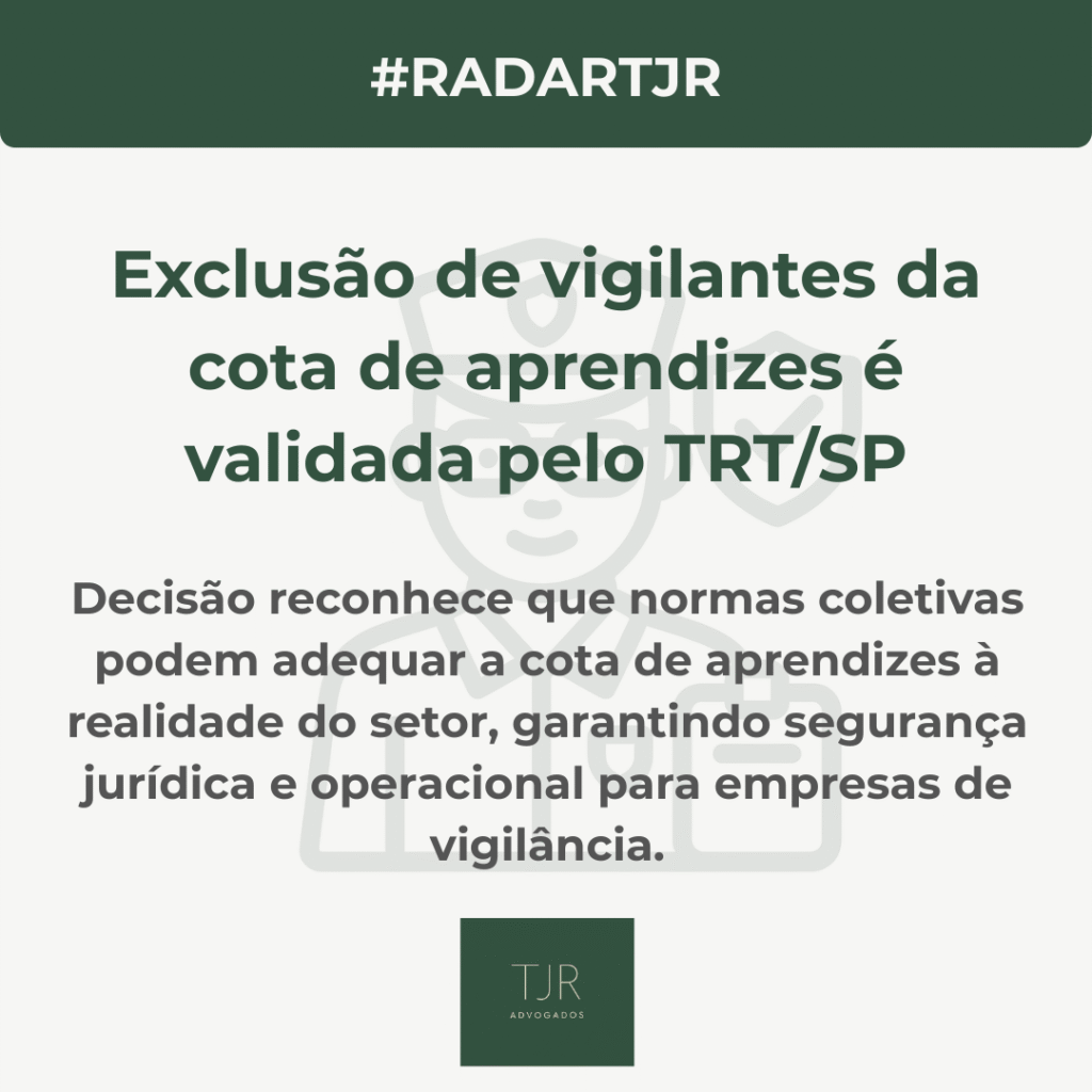#RadarTJR – Decisão do TRT de São Paulo reconhece exclusão de vigilantes do cálculo da cota de aprendizes