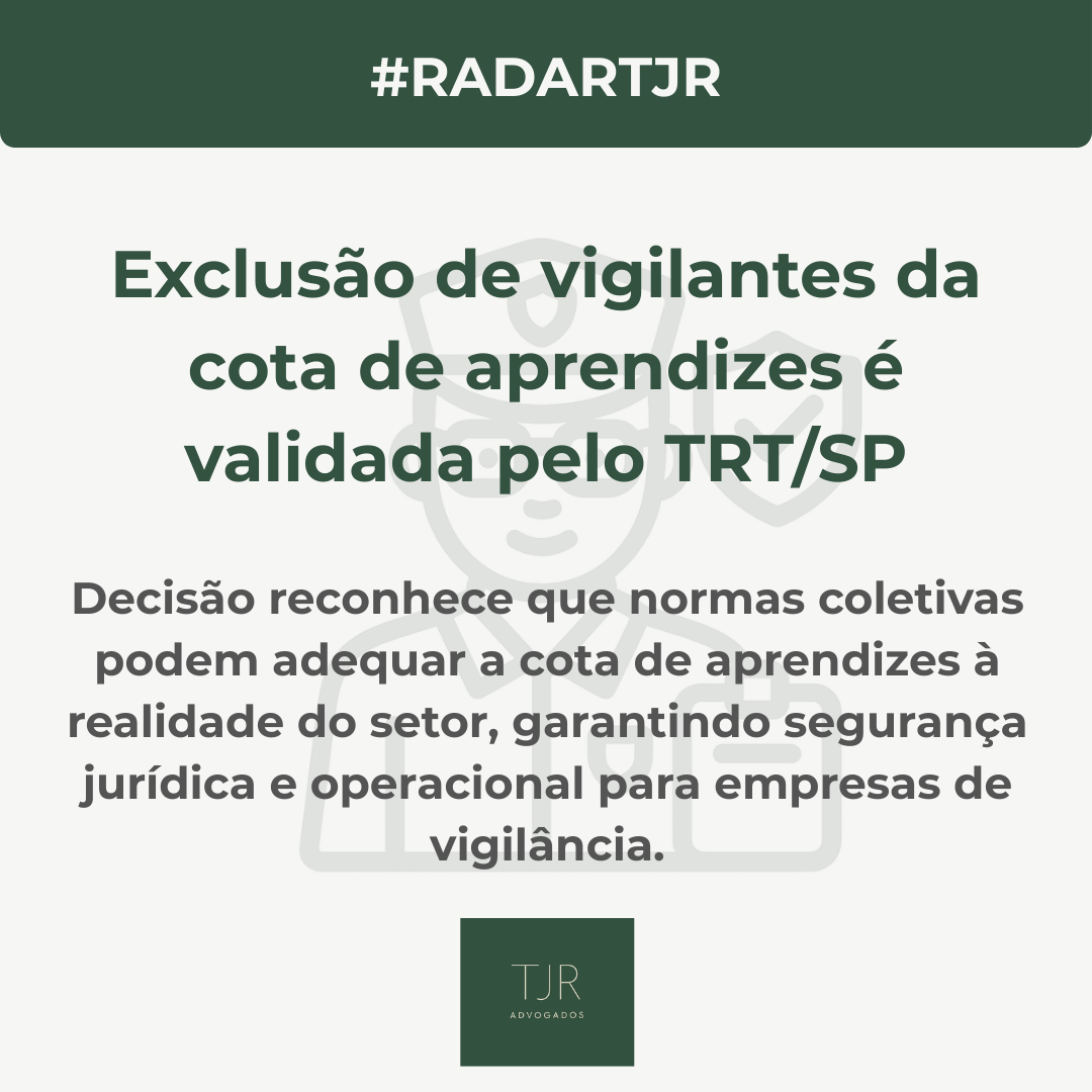 📌 Decisão do TRT de São Paulo reconhece exclusão de vigilantes do cálculo da cota de aprendizes #RadarTJR
