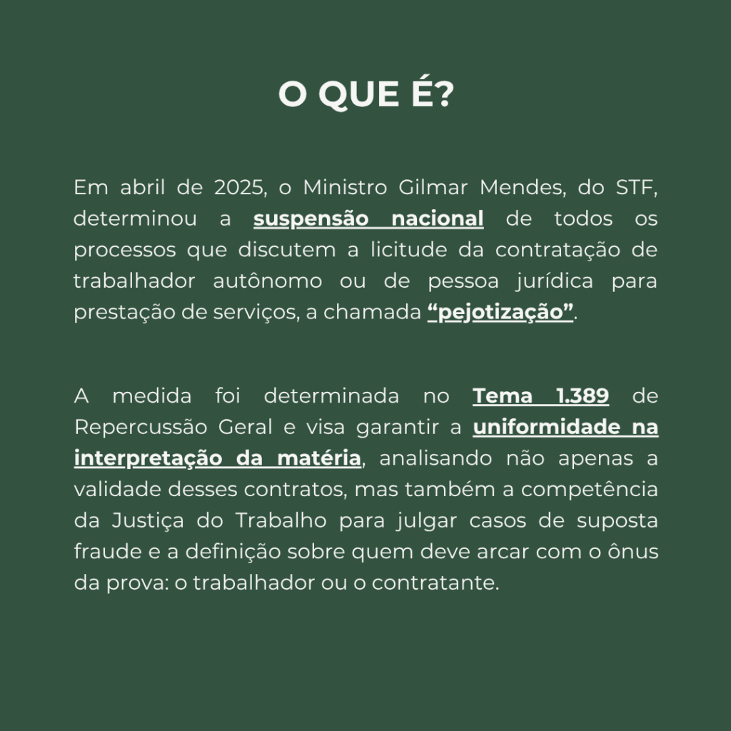 O STF determinou a suspensão nacional dos processos que discutem a chamada “pejotização”.