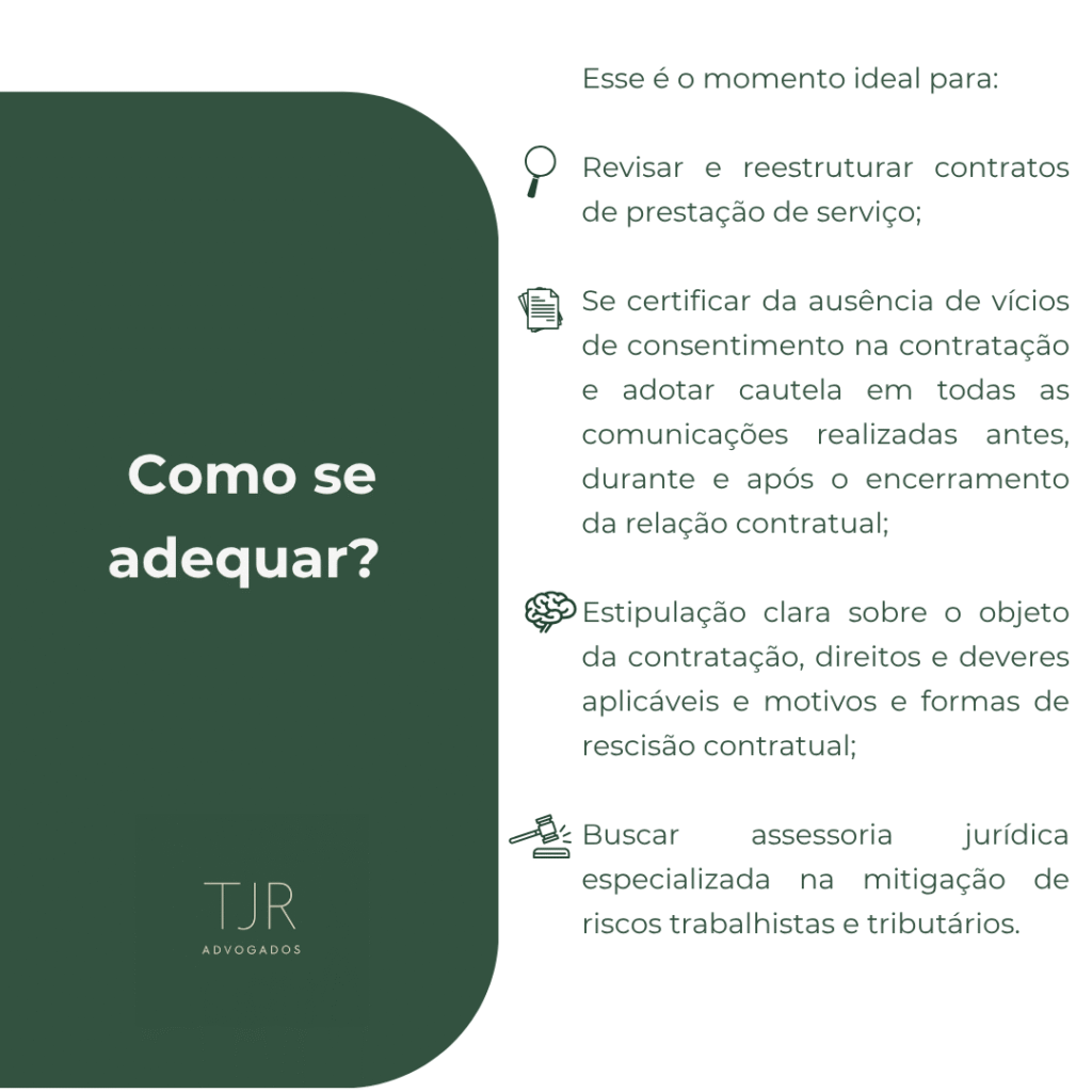 Na prática, a decisão não encerra o assunto; ao contrário, marca o início de uma análise mais criteriosa sobre os contratos com PJs, exigindo que as empresas redobrem a atenção à forma como contratam prestadores de serviços.