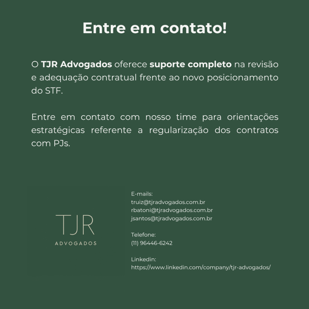 #TJREXPLICA #Pejotização #STF #DireitoTrabalhista #ConsultoriaJurídica #Compliance #ContratosPJ #AdvocaciaEmpresarial